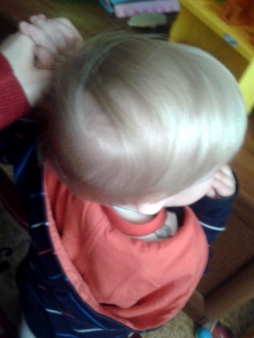 Ось настав час нам робити стрижку. Стриглися ми вперше у житті!!! Як робити зачіску, спитала у мами, почитала в інтернеті... Кухоні ножиці, гребінець, натхнення і вперед! Від чола до потилиці.