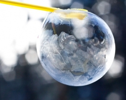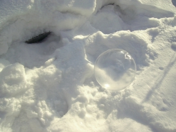 ? Якщо при температурі від –7*С надути мильний міхур, він у вас на очах покриється крижаними узорами і перетвориться на кришталеву кулю. Чим нижче температура, тим швидше замерзають кулі. Такими "іграшками" можна прикрасити вітки дерев. Якщо на вулиці не досить морозно, то кулі стають еластичними. І замість того, щоб лопатися, вони стрибатимуть, як гумові.