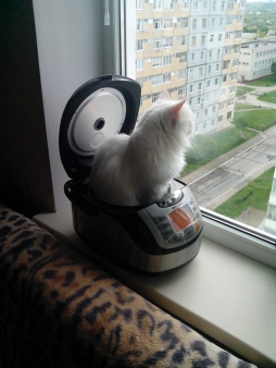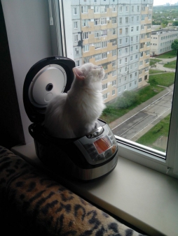 Виходить, що то чоловік Вам сюрприз хотів приготувати - святкову вечерю?)))) Котик випадково у мультиварці нічого не залишив?)))))))) Вигляд у нього замріяний, точно хотів напакостити. Вдивіться йому в очі - все одразу стає зрозуміло:)