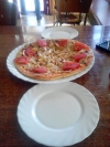А сьогодні нам чомусь їх було мало і ми замовили ще й піцу. Щоб хоч якось виправдатись перед офіціанткою, я ляпнула, що ми тиждень не їли, бо економили на похід до їхнього кафе. Але бідна дівчинка так злякалася, ніби й справді повірила… тепер мене мучить совість)