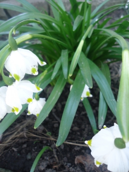 Під моїм вікном якщо не море, то безліч маленьких озерець підсніжників. Вони розрослися навіть за огорожею... Можу виділити із них два види: більшість із яких дрібніші, а інші декілька білосніжних острівців вирізняються вищими стеблами і більшими квітами-дзвіночками. Я прочитала, що насправді існує аж 18 видів цієї ніжної але, на жаль, зникаючої рослинки.